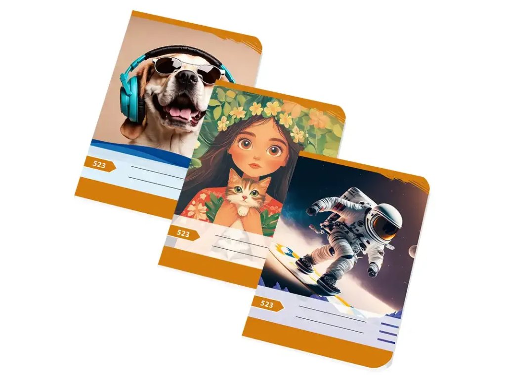 Školsý zošit A5, 523 linajkový 20 listov (bez okrajov)Školský zošit určený pre základné školy. Vyrobený je z bieleho bezdrevného papiera. Označenie zošita: 523Liniatúra: linka - 12 mm riadky (bez okrajov)Formát: A5Počet listov: 20Dodatočné parametre